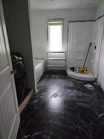 SPC, LVP, and laminate flooring installation with precise baseboard finishing.